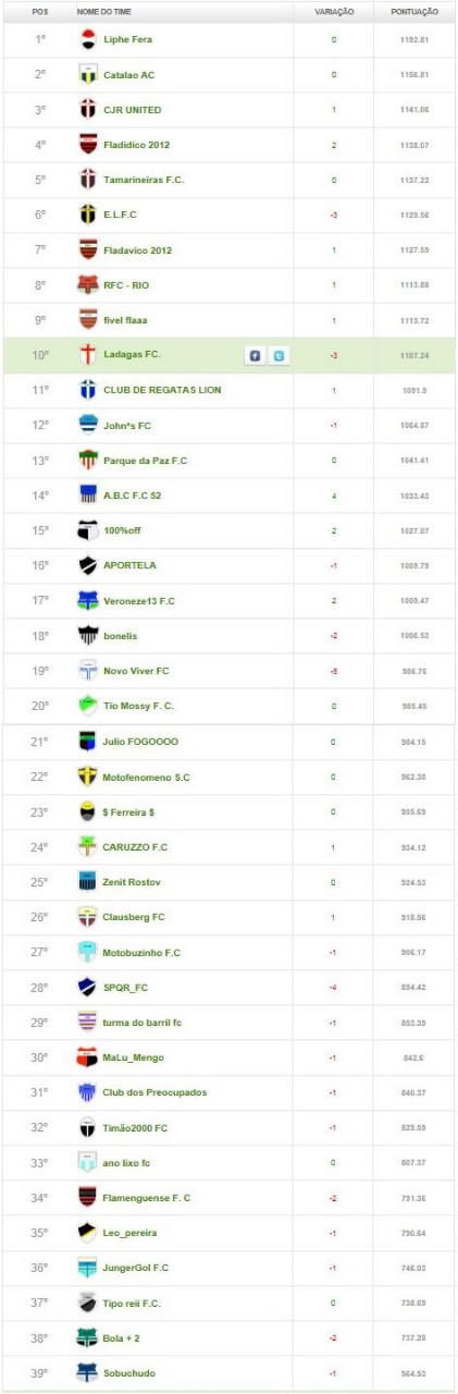 Classificação Geral - 20ª Rodada